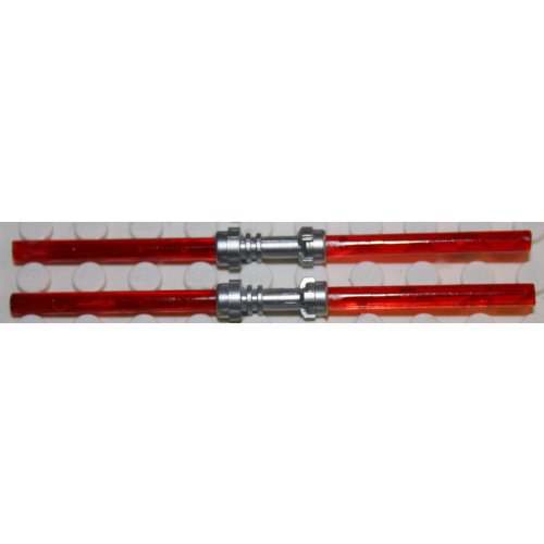 LEGO Star Wars - 2 rote Doppel-Laserschwerter mit Griff in "Flat Silver"