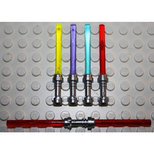 Beschreibung : LEGO Star Wars - 4 + 1 Laserschwerter + Doppellaserschwert 4 farbig mit FLAT SILVER Griff - Die Schwerter sind in Druckverschlussbeuteln verpackt, so dass Sie vor Staub und Schmutz geschützt sind und auf dem Transport nichts passieren sollte