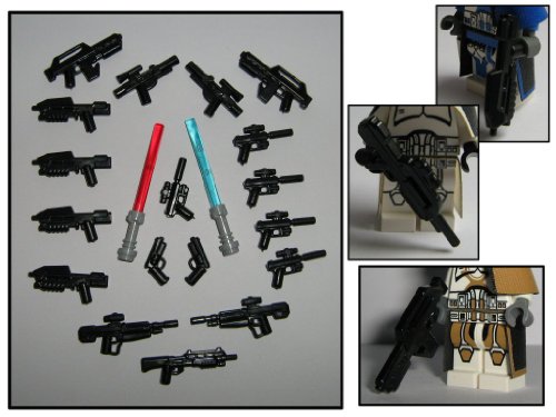 Beschreibung : 20er Waffenset für Lego Star Wars Figuren. Darunter 16 custom design Waffen, 2 original Lego Blaster und 2 original Lego Lichtschwerter.